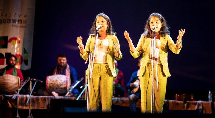 Sidhu’s song then took the audience inward, into a private, introspective space. “Kichudin mone mone ghorer kone, shyamer pirit rakh gopone” he sang, and the line resonated deeply. It was followed by Rina Das Baul’s evocative call to Krishna—an invitation to travel into the garden of devotion. By this point, it felt as though the audience was no longer seated in rows of chairs. Everyone seemed to be walking an inner path, quietly and collectively.